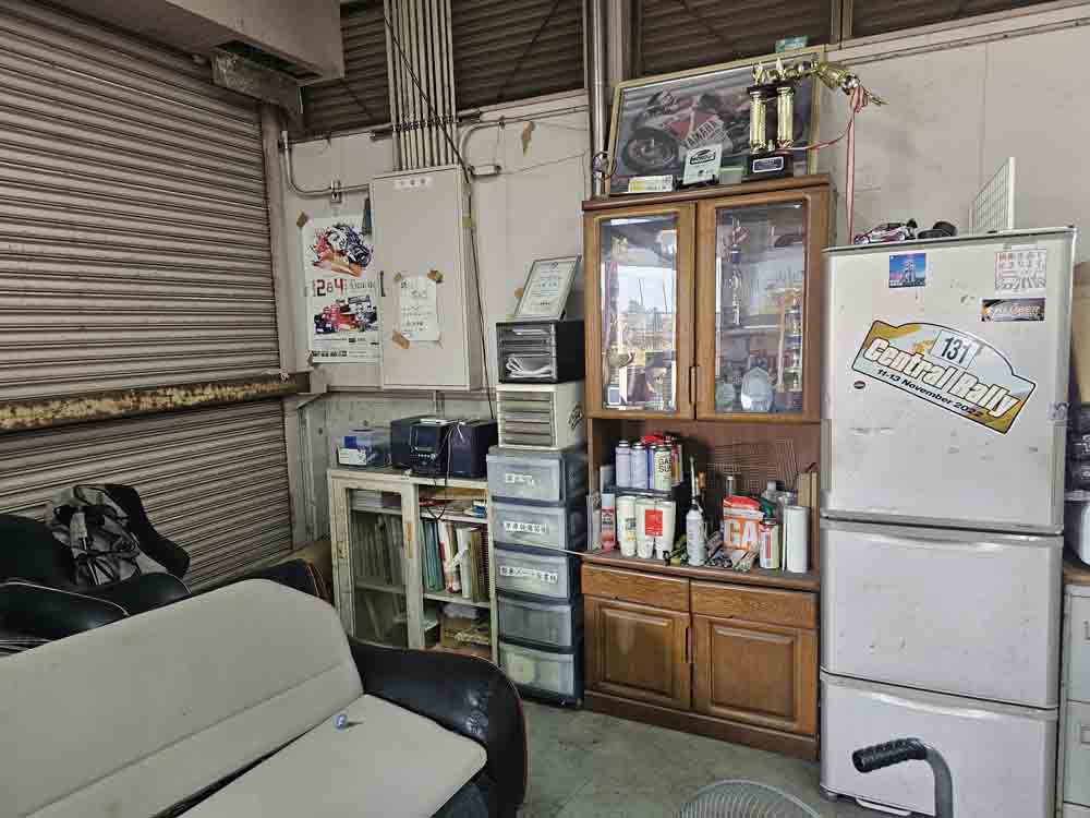 車庫・部室(2025.11/30) 旧資料が、鍵付き棚に整然と整理されてました。感激です! |